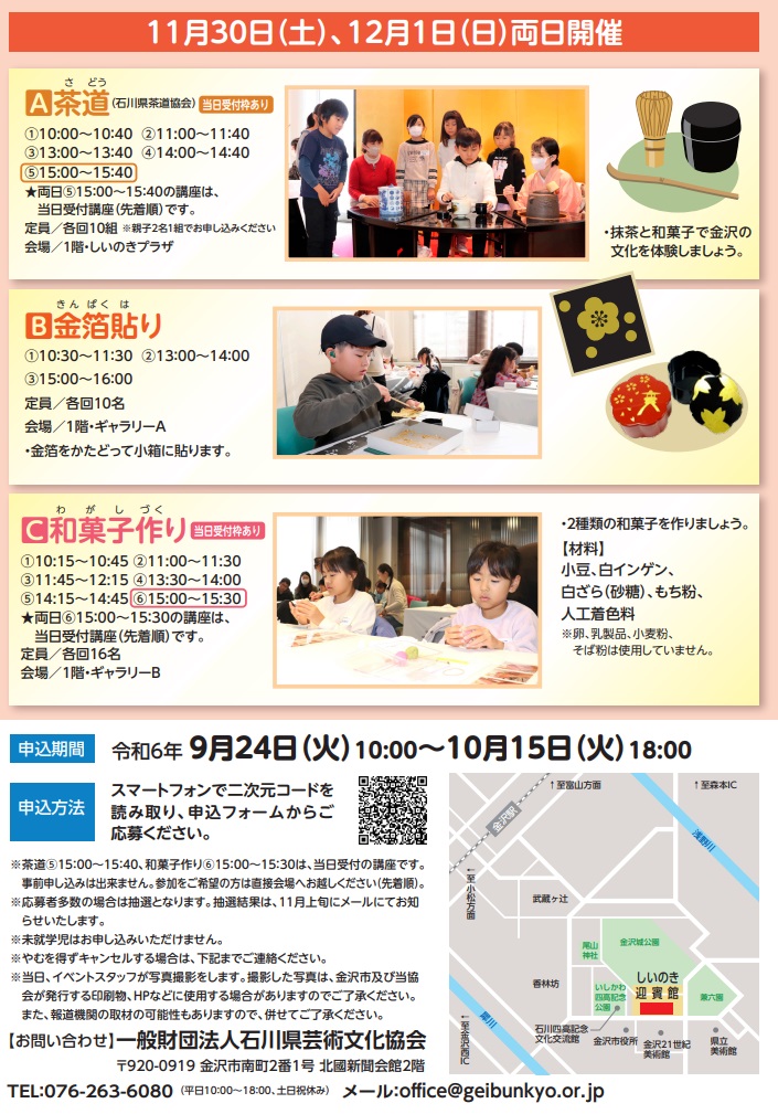 | お問い合わせ先 | 一般財団法人石川県芸術文化協会 TEL:076-263-6080 (平日10:00〜18:00(土・日・祝休み)) |